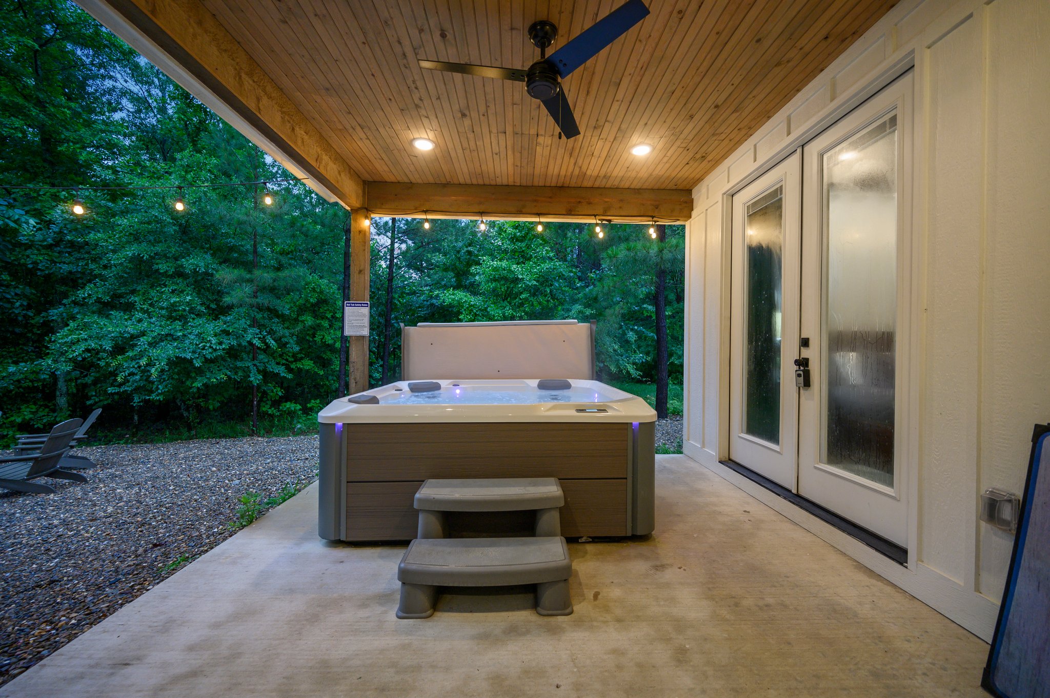 ❤️OUTDOOR AREA: As if the indoor living wasn't enough - walk outside to your own private and secluded backyard. You'll find a large covered deck with hot tub, gas grill, outdoor fireplace, and big screen tv- with abundant seating for lounging and dining.
