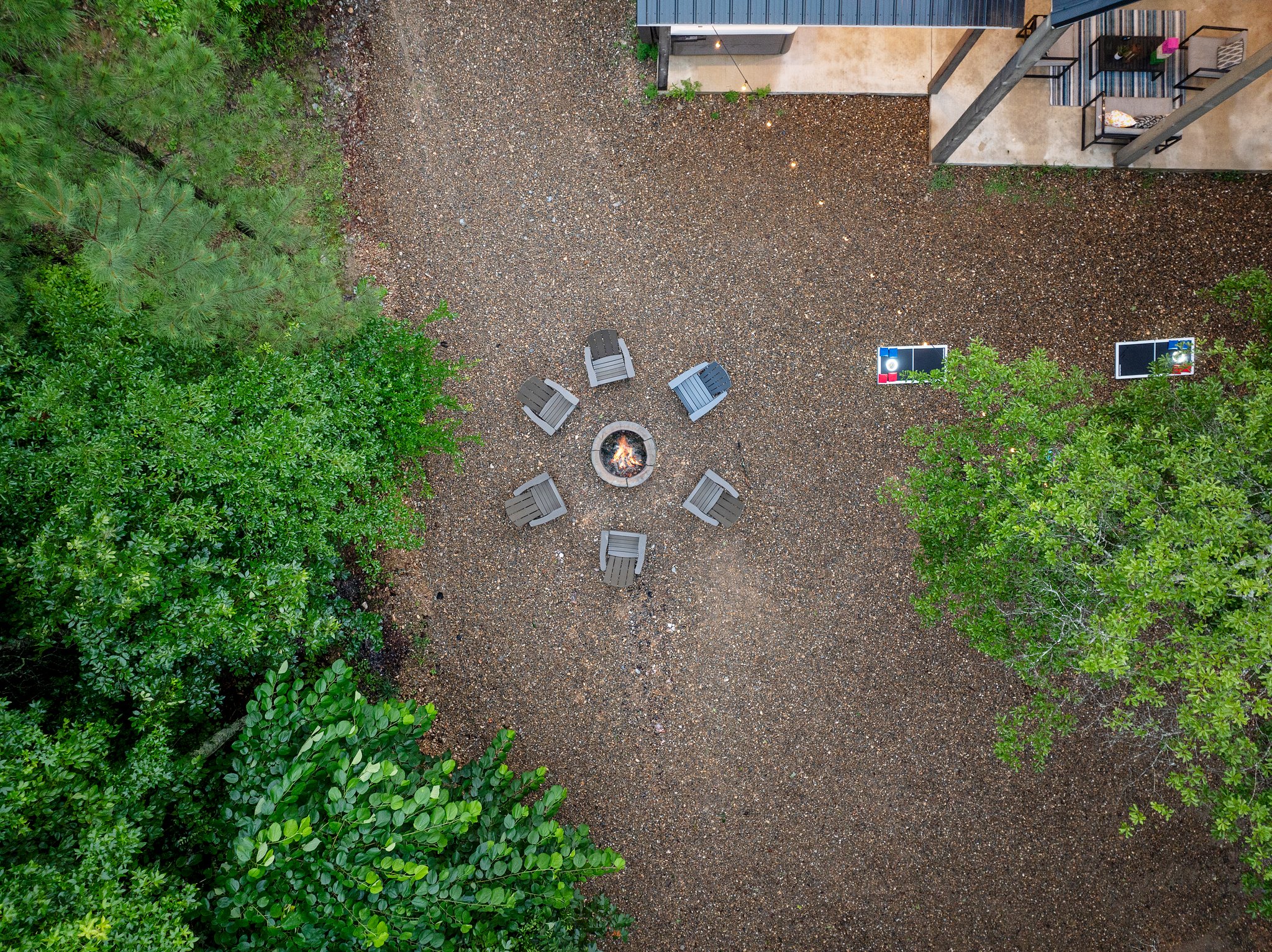 A short walk down the path from the back deck leads to an inviting outdoor fire pit, surrounded by plenty of chairs for your entire group to gather around and enjoy. We've nestled a daybed swing beneath the tall trees that overlooks a seasonal creek-enjoy a cup of coffee and you may see a deer or two!